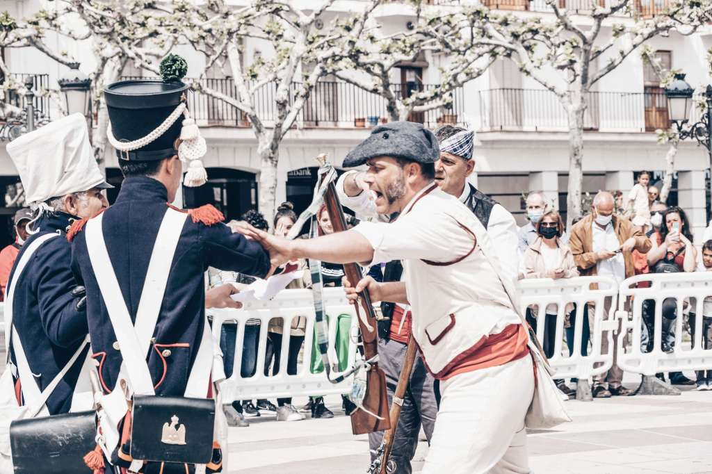 La representación se basa en uno de los episodios más dramáticos y valientes de la historia de Almazán durante la Guerra de la Independencia. El 10 de julio de 1810, las fuerzas del Primer Imperio Francés, formadas por 1.100 soldados bajo el mando del coronel Pierre Baste, prendieron fuego a la villa. Esta acción extrema fue una represalia ante la firme resistencia de 1.600 guerrilleros comandados por el reconocido Jerónimo Merino, conocido popularmente como ‘El Cura Merino’, quienes, junto a los habitantes, se refugiaron tras las murallas de la localidad.